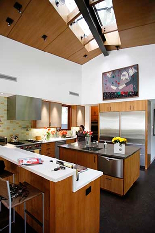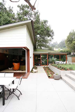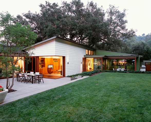 This project is a major renovation and addition to a 1950's era ranch house in a canyon in West Los Angeles that seeks to reinterpret the Ranch House. The new design aims to redefine the disposition of spaces (public to private) and introduce a more reasonable and elegant entry sequence. Each room serves double duty as gallery space to accommodate the client's extensive art collection. An open kitchen, family and breakfast room serve as the new nexus for the family. A large skylight at the ceiling ridge reveals the canopy of a century-old oak tree. Window walls pocket away to further connect interior spaces to the courtyards and gardens. Materials were chosen for compatibility with the client's art, including specific wall tiles to highlight their 20th century American pottery collection.